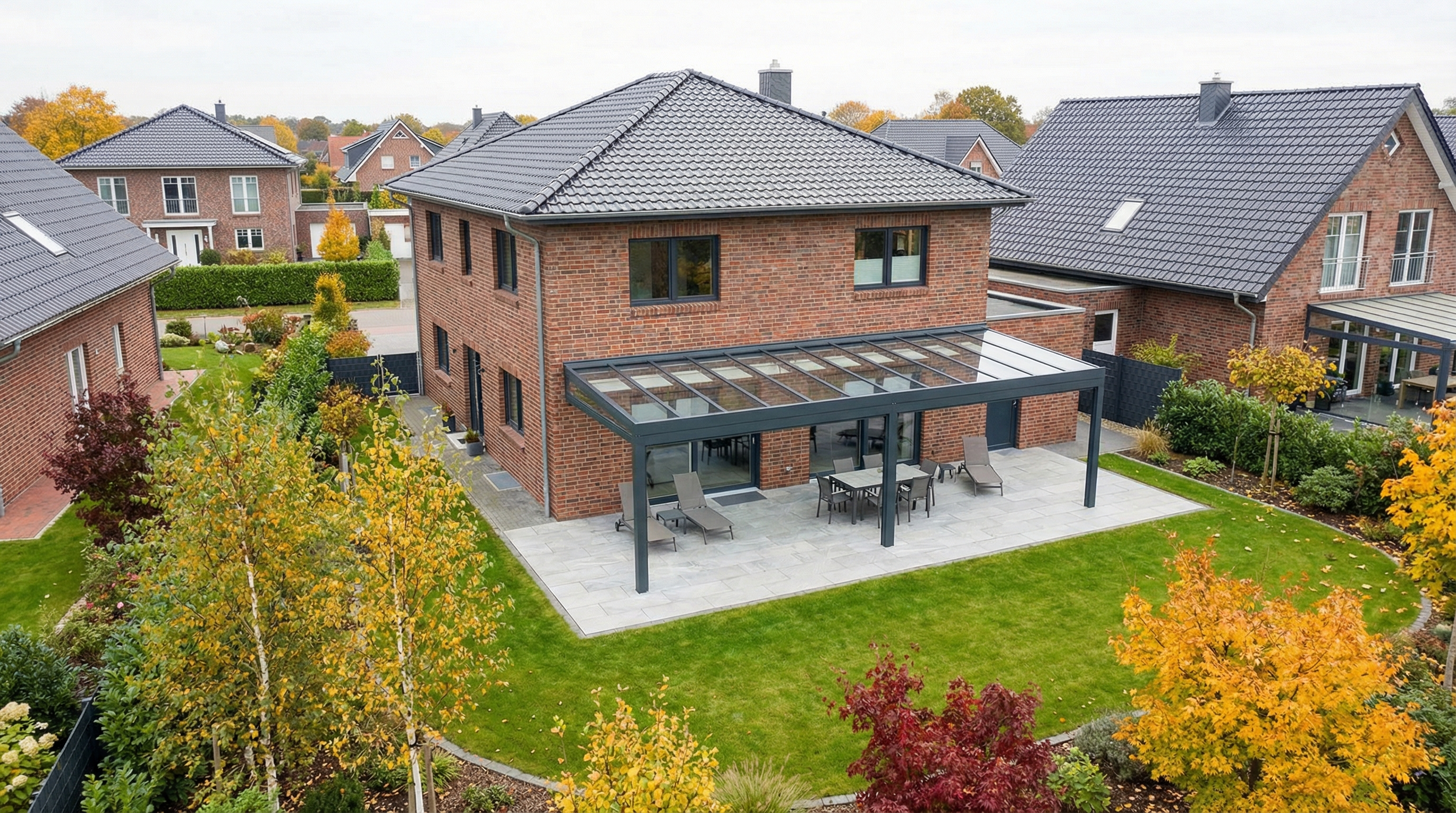 Genießen Sie Ihre Terrasse in Seevetal das ganze Jahr – ob bei Sonnenschein, Regen oder leichtem Schneefall.